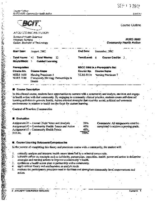 NURS 8800 - Community Health.Action | The BCIT cIRcuit