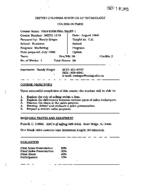 MKTG 1219 - Professional Sales 1 | The BCIT cIRcuit
