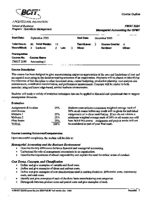 FMGT 3224 - Managerial Accounting for Operations Management | The BCIT cIRcuit