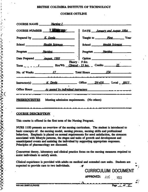 NURS 1100 - Nursing I | The BCIT cIRcuit