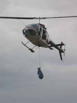Helicopter landing at staging area with captured female big horn | The BCIT cIRcuit
