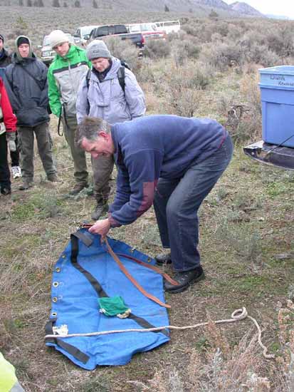 Min. of Environment biologist demonstrating sling for sheep capture | The BCIT cIRcuit