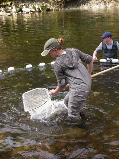 FWR student Crystal Leonard netting Coho salmon for tagging
