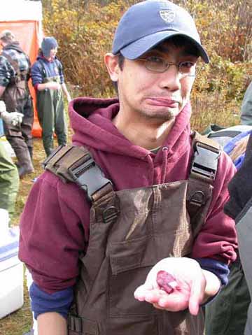 FWR student Carlo Acuna and chum salmon heart