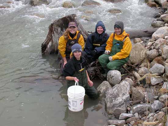 FWR students checking gee or minnow traps for juvenile fish