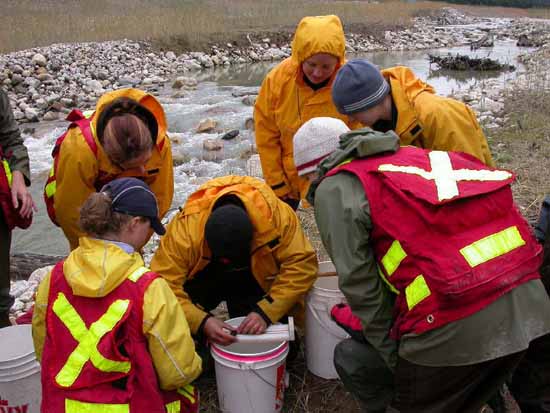 FWR students learning to "dye and tag" fish